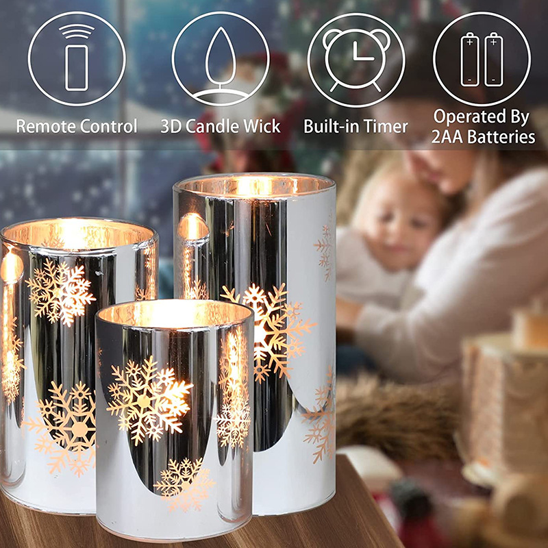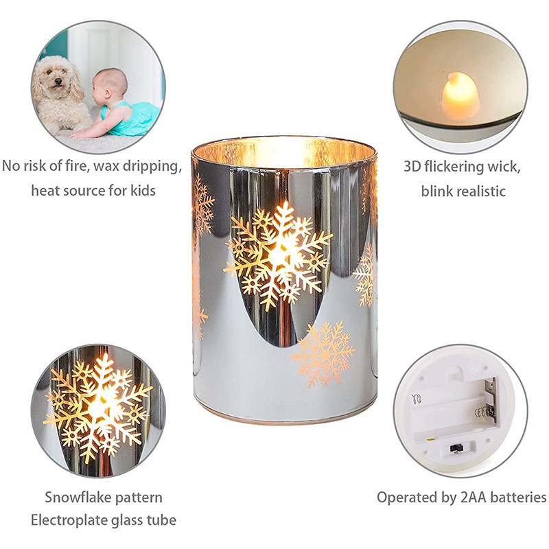 【Product Name】: Set of 3 Electroplated Snowflake Common Droplet Head Electronic Candles