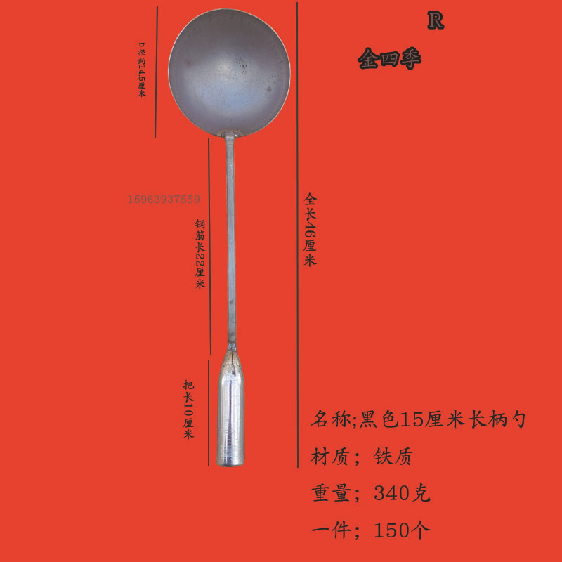 金四季13厘米黑色长柄勺尺寸图