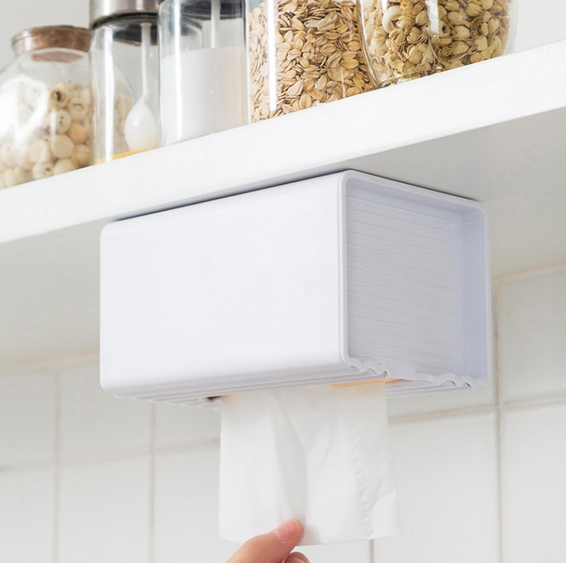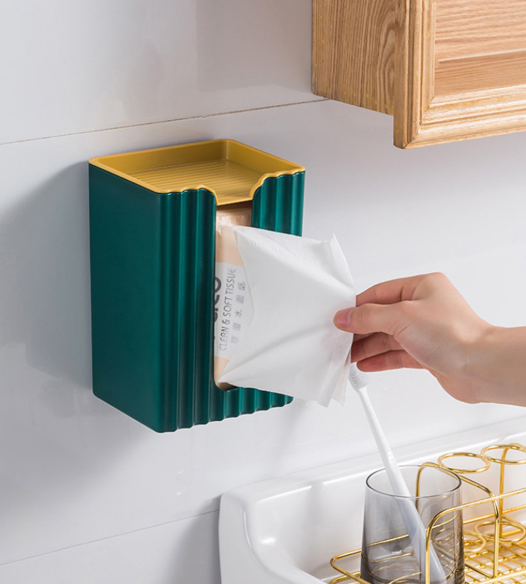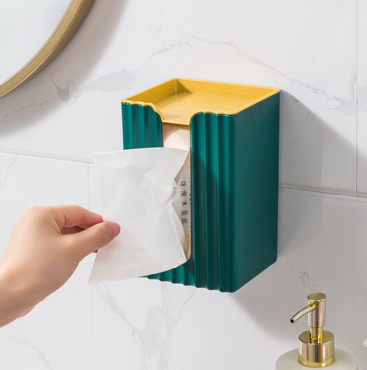 New Style with Lid No Trace Stickers Paper Extraction Box Wall-Mounted Tissue Holder Kitchen Punch-Free Toilet Tissue Dispenser