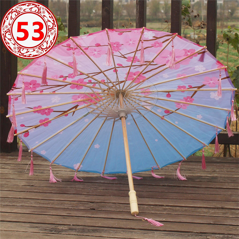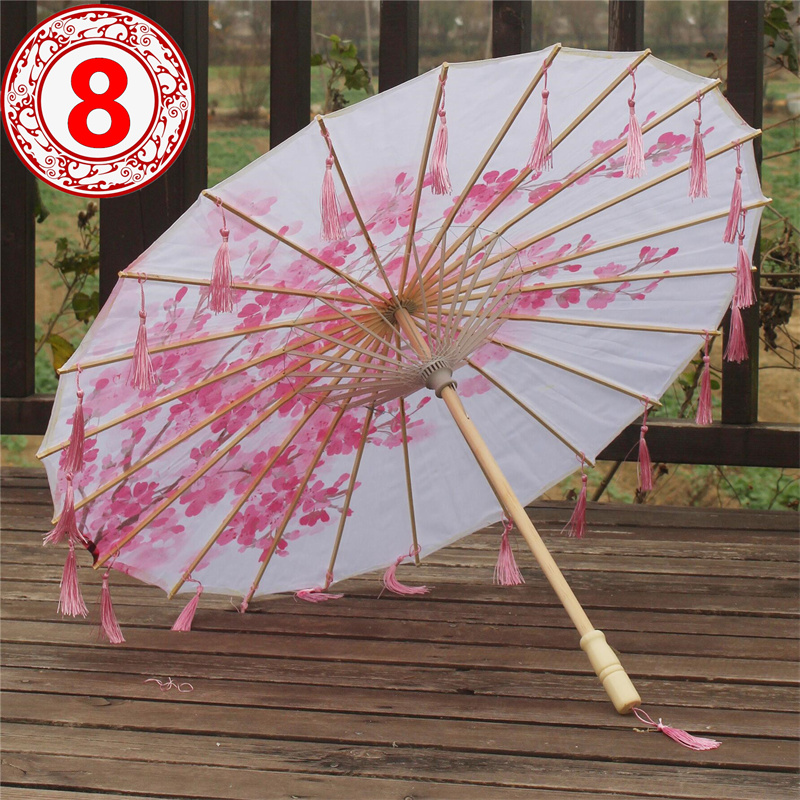 Material: imported printed silk umbrella, umbrella frame is made of bamboo.