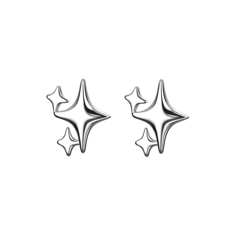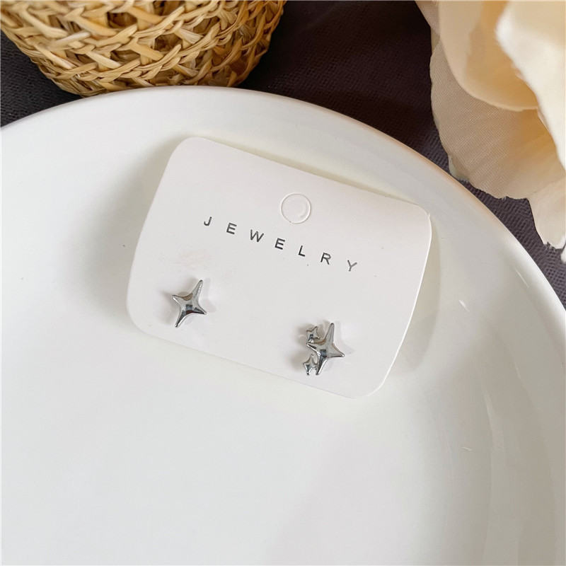 S925 Sterling Silver Needle Four Awn Star Ear Studs Women's Niche Design Earrings 2022 New Trendy Cold Earrings