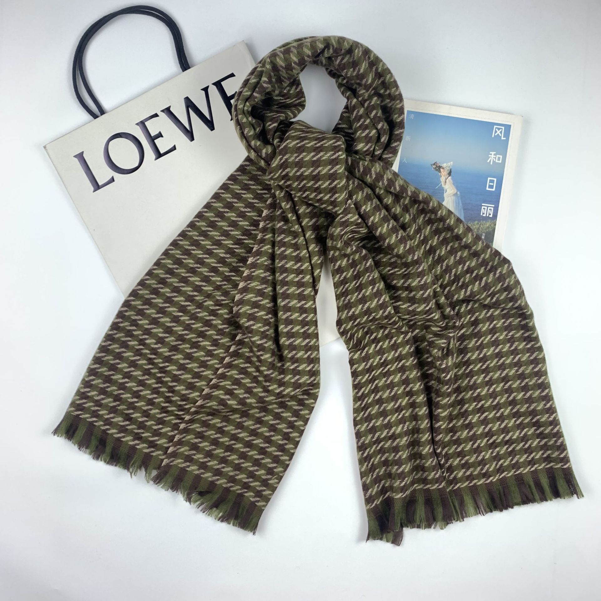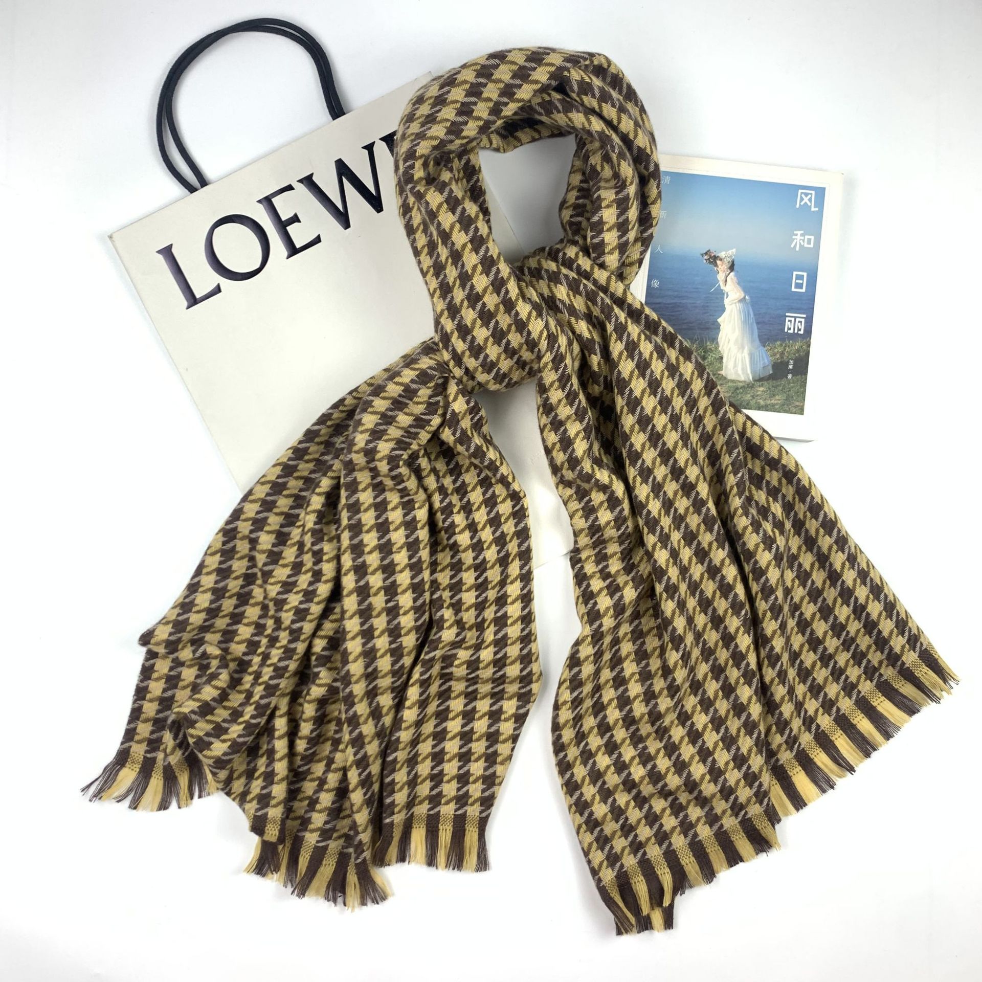 Houndstooth Scarf for Women Spring New Korean Retro Shawl Japanese Cashmere-like Warm Fringe Bib Batch