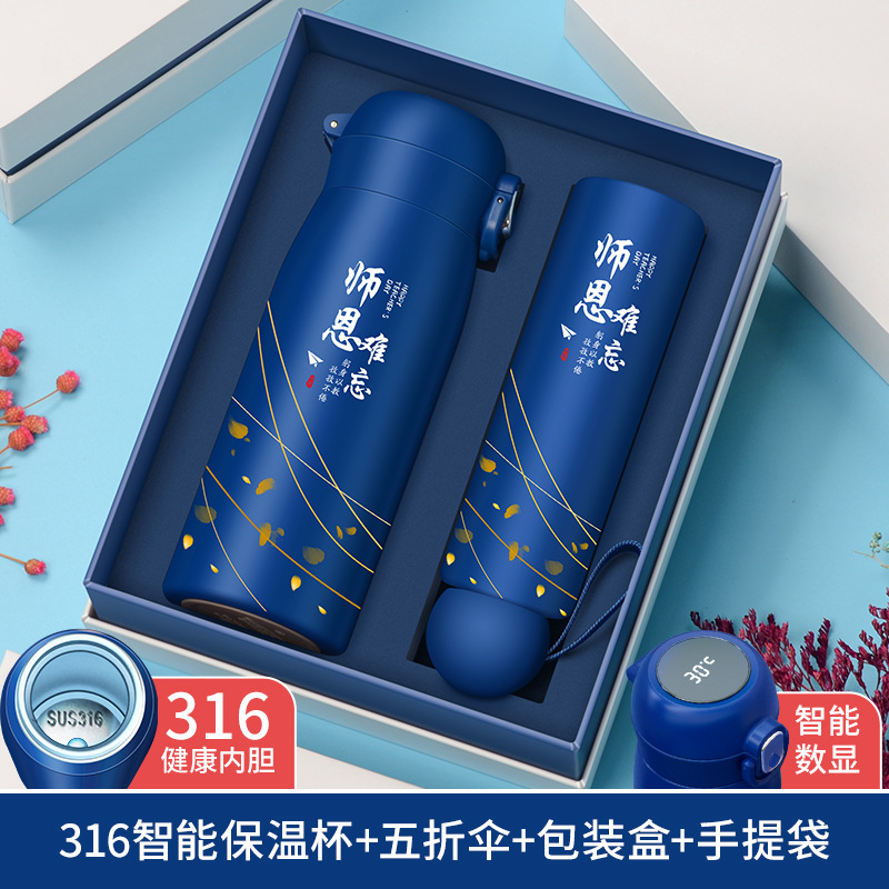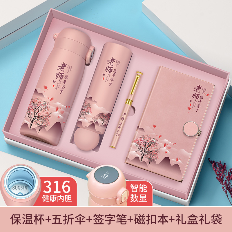 (teacher's kindness) blue cup + pen + book + umbrella