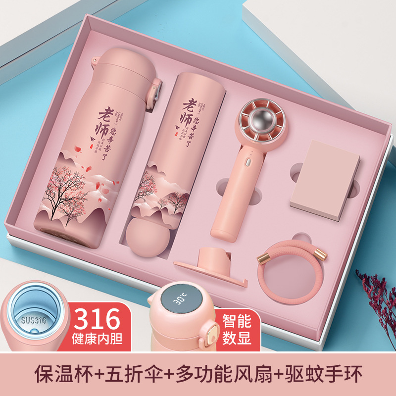 (teacher's kindness) blue cup + umbrella + fan + bracelet