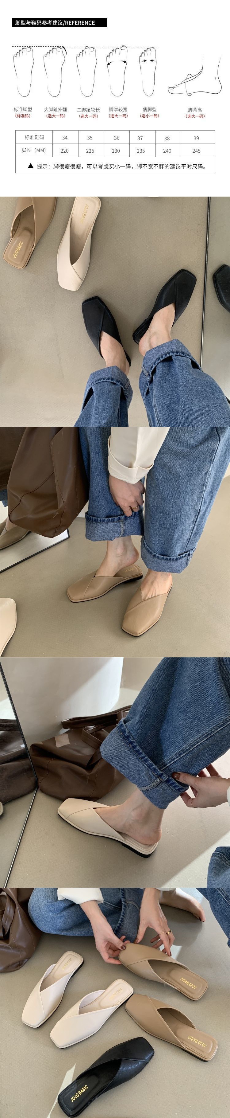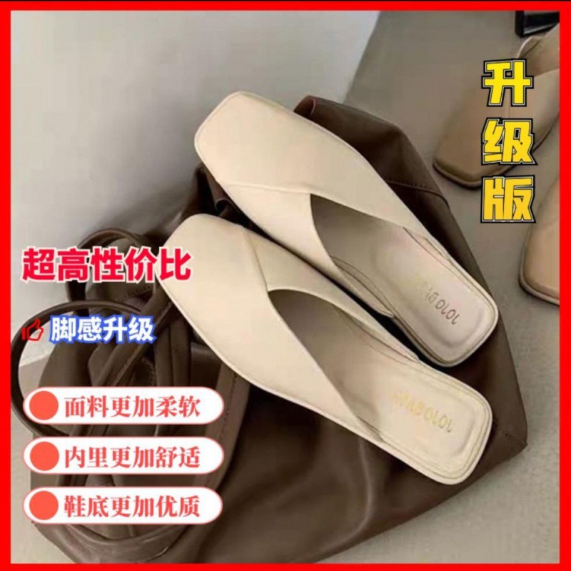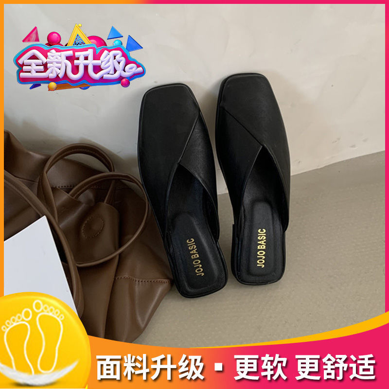 Half Slippers Closed-Toe Slippers Women's 2023 New Summer Outdoor Slippers Women's Flat Soft Bottom Lazybones' Mules