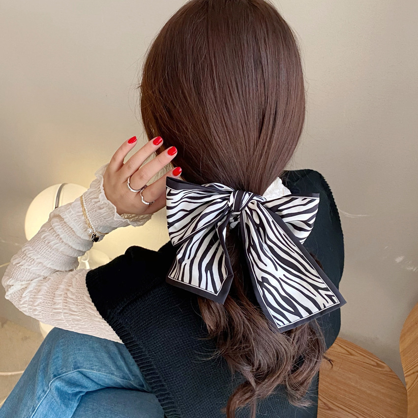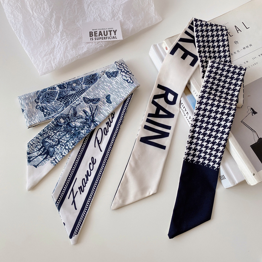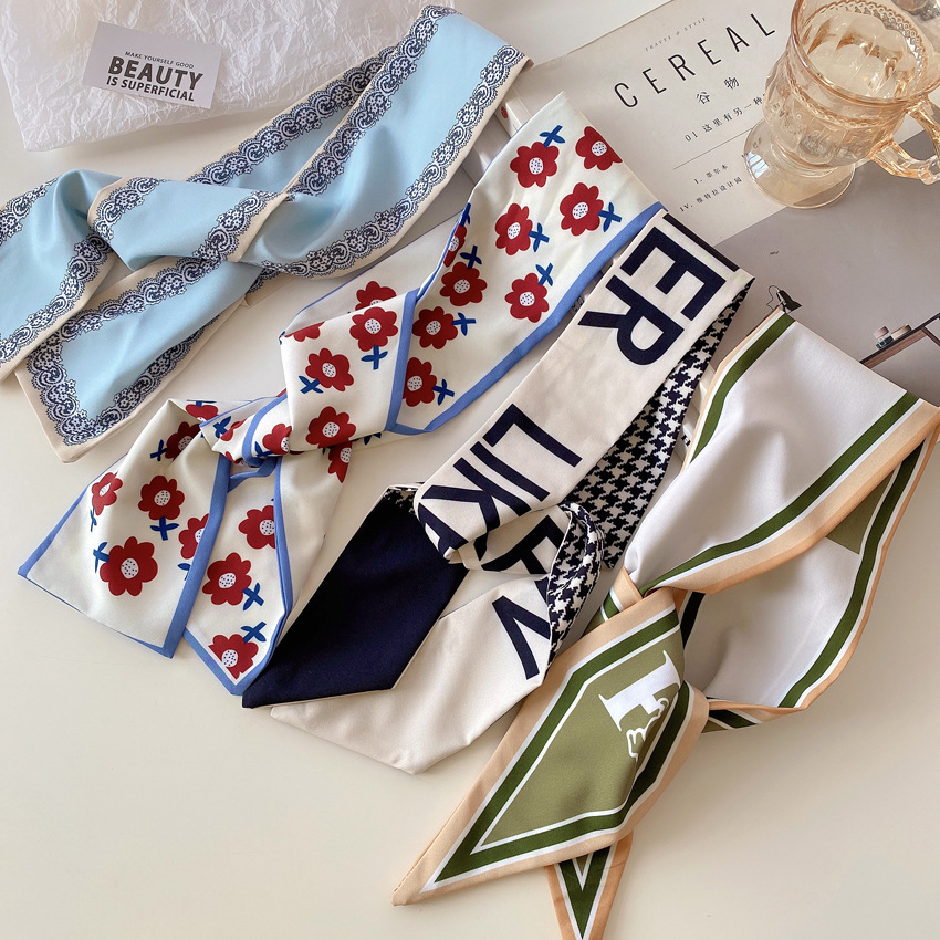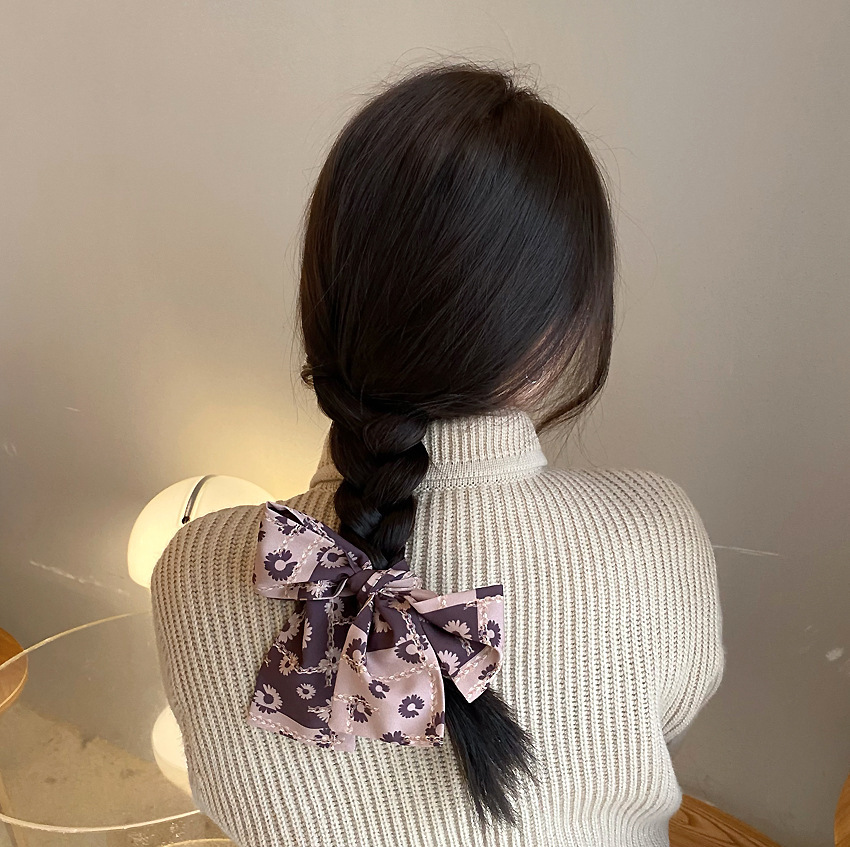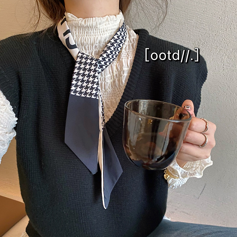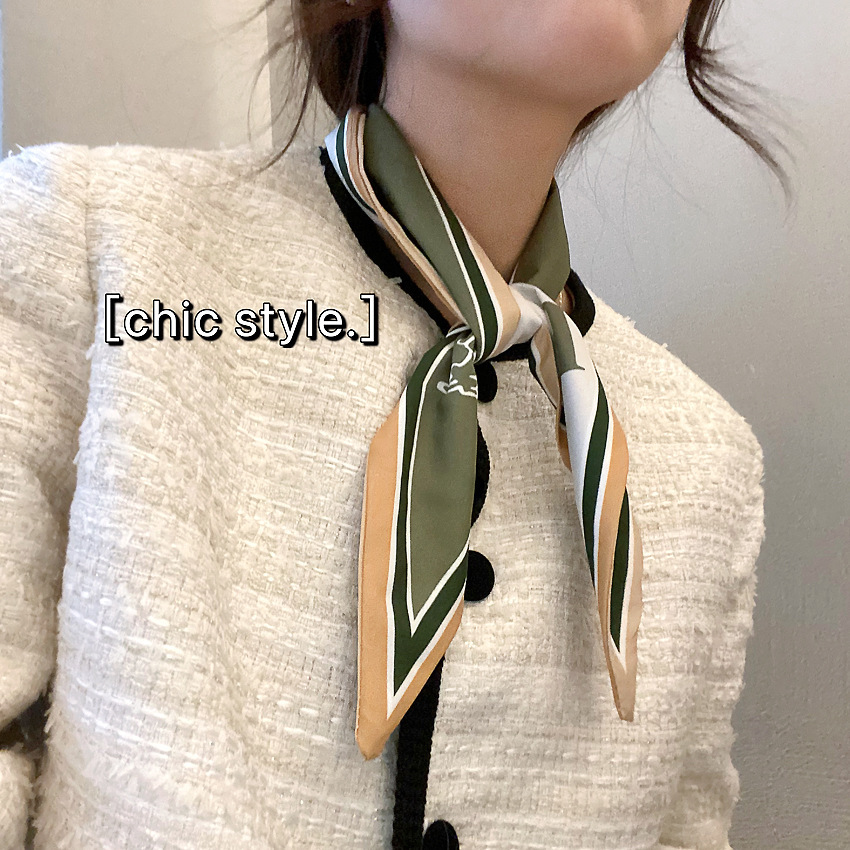 Narrow scarves look better for creating a fashion pose, and wearing a low ponytail is very Korean and gentle.
