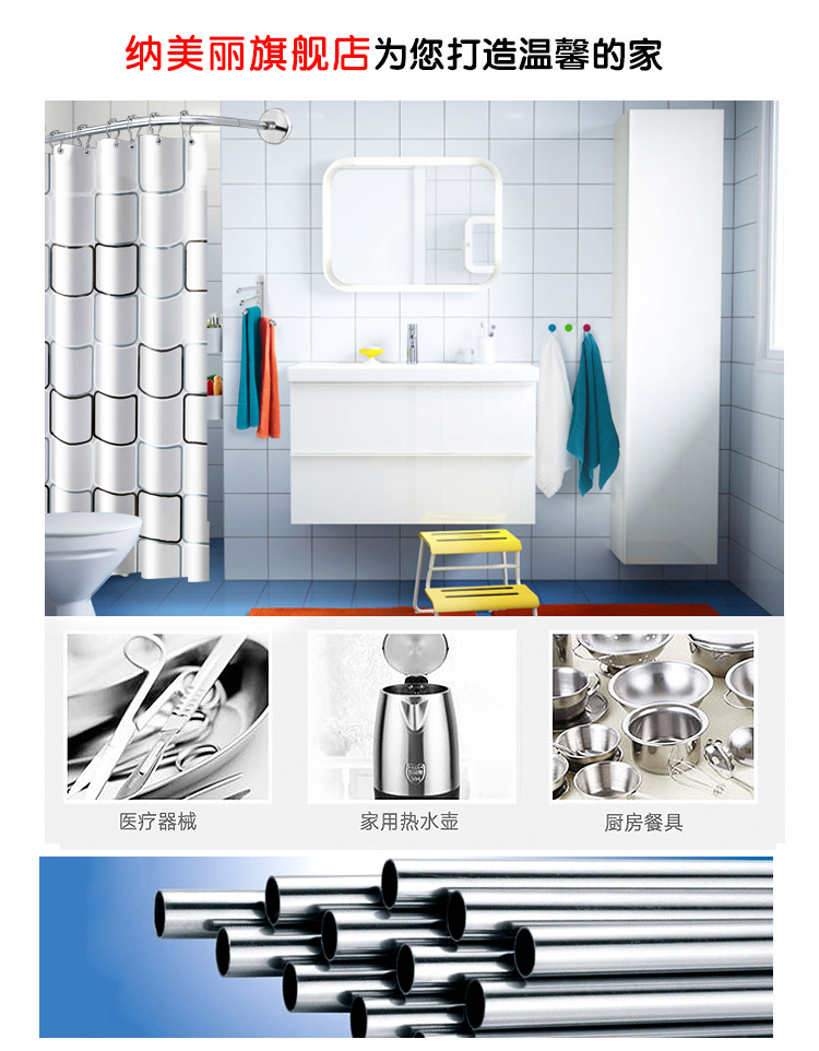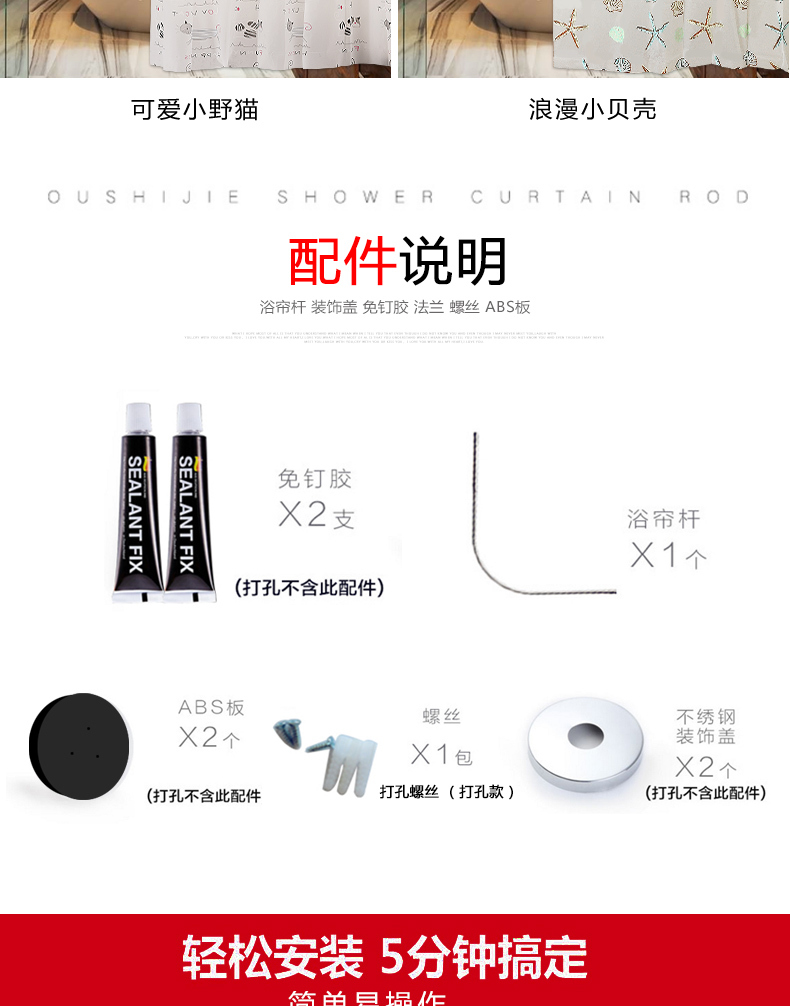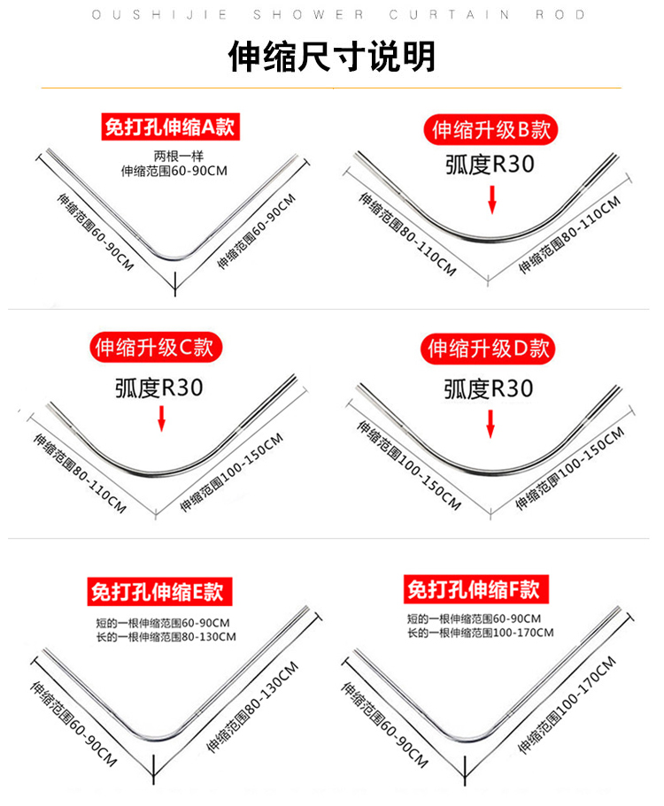 shower curtain rod punch-free telescopic rod arc shower curtain suit bathroom shower room bathroom half-shaped bathroom bar rack batch 中文版