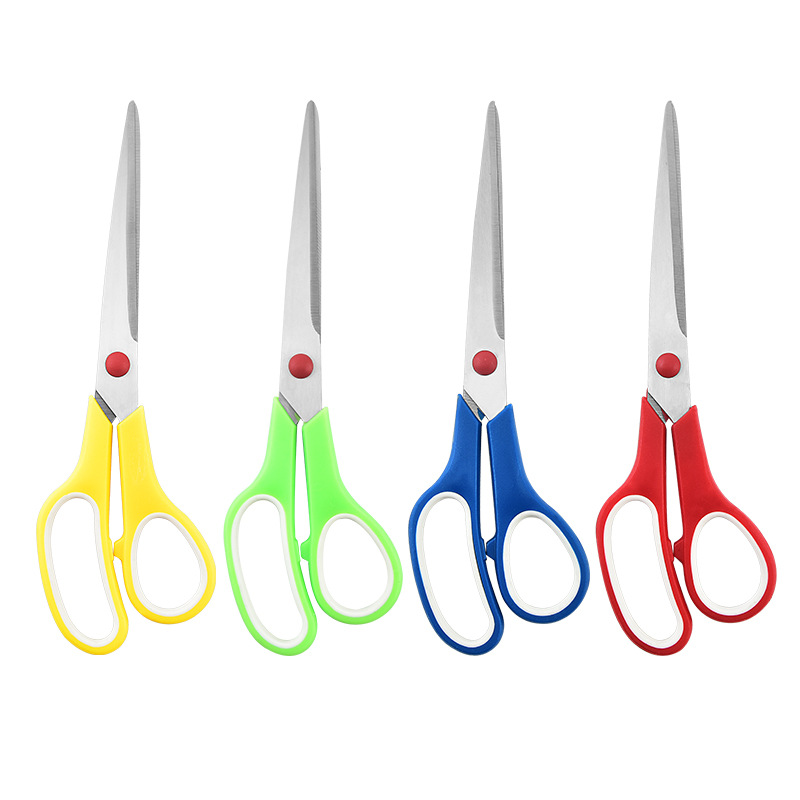 factory rubber scissors 9.5-inch household office scissors dressmaker's shears student stationery scissors double-color handle rubber scissors 中文版