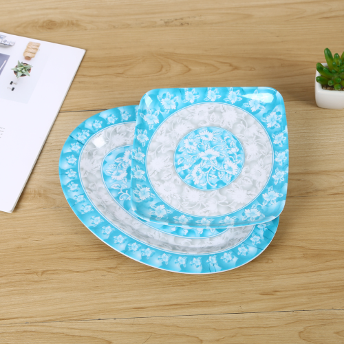 Product Name: Blue and White Dual-Color Printed Pattern Decorative Kitchen Dishware with Melamine Material - Durable and Easy to Clean.