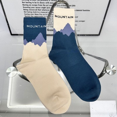 Xiaohongshu Popular Socks Women's Mountain and Sea Socks Pattern Japanese Style Mid-Calf Length Socks Men's Ins Trendy Good Quality Wholesale Socks