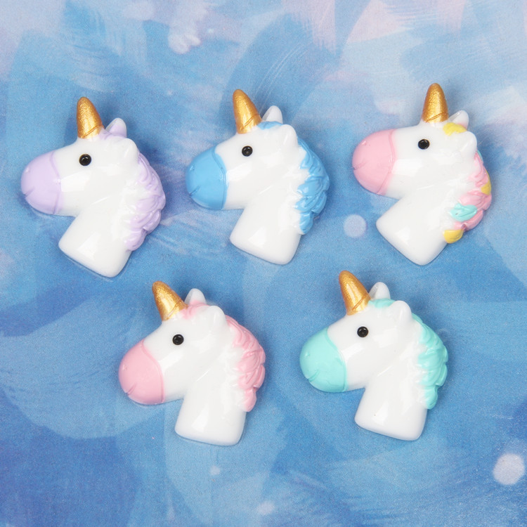 Free Shipping Glittery Unicorn Head Cabochons Shimmer Resin Cabochon Mobile Phone Decorations