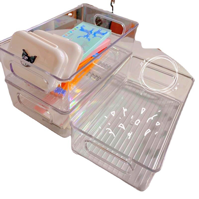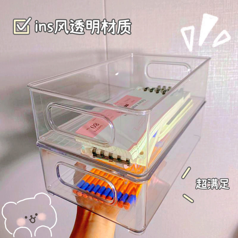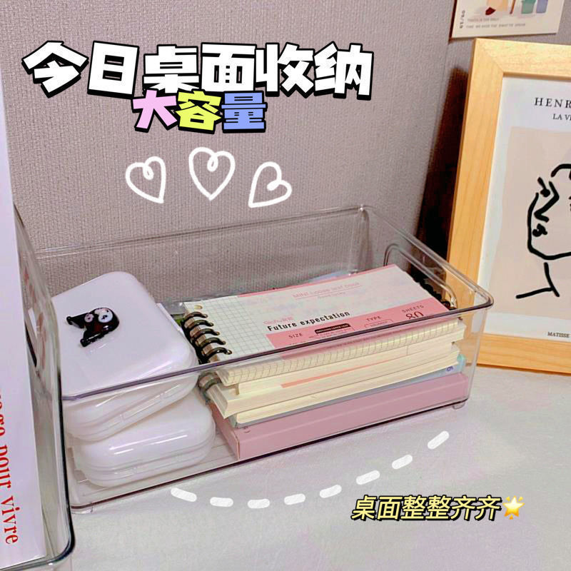 Transparent Desktop Storage Box Overlay Design More Space-Saving Thickened Material Is Not Easy to Damage Stationery Storage Box Storage Box Wholesale