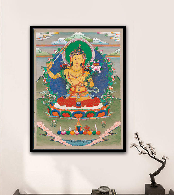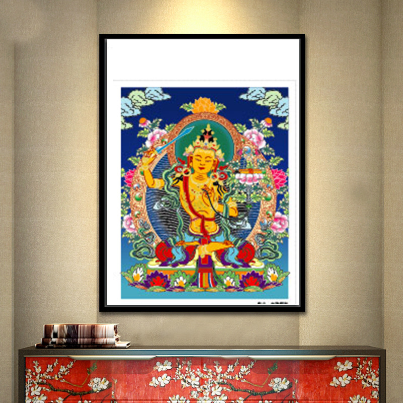Cross-Border Thangka Living Room Bodhisattva/Buddha Statue Decorative Painting New Chinese Tea Room round Light Painting Home Entrance Painting 中文版