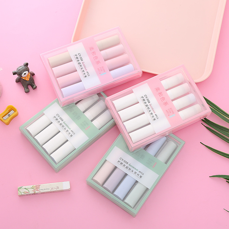 Good-looking Macaron Eye Protection Fluorescent Pen Ins Hand Account Pen Set Student Key Mark Soft Head Highlighter