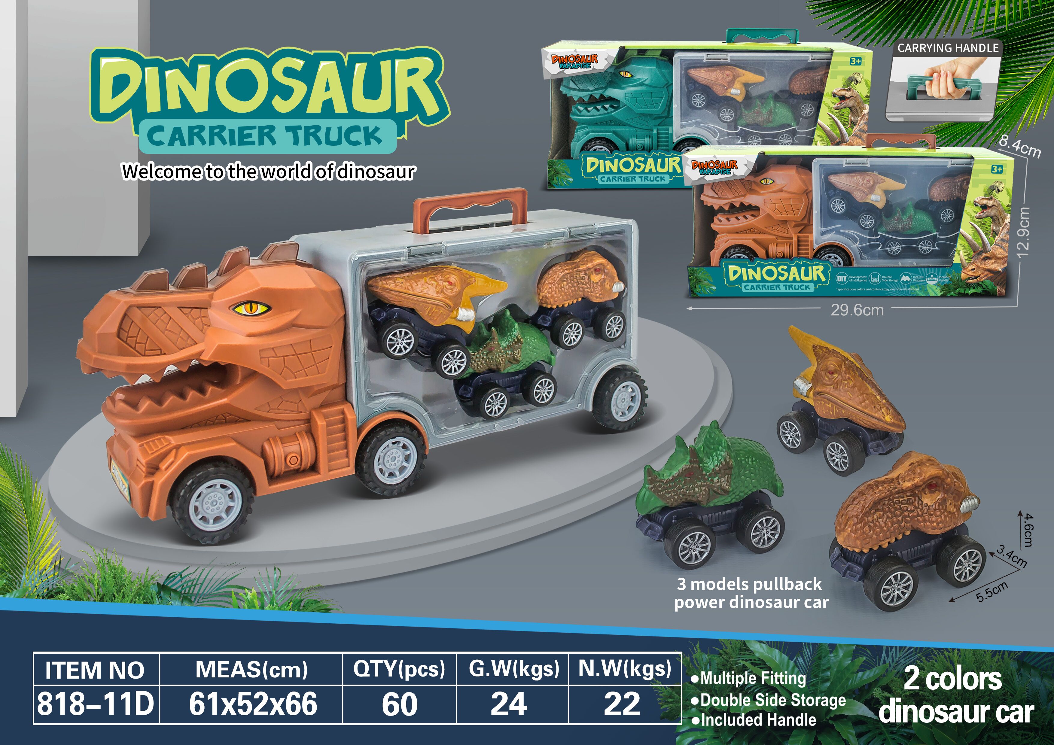 tyrannosaurus rex storage car 3 warrior car toys