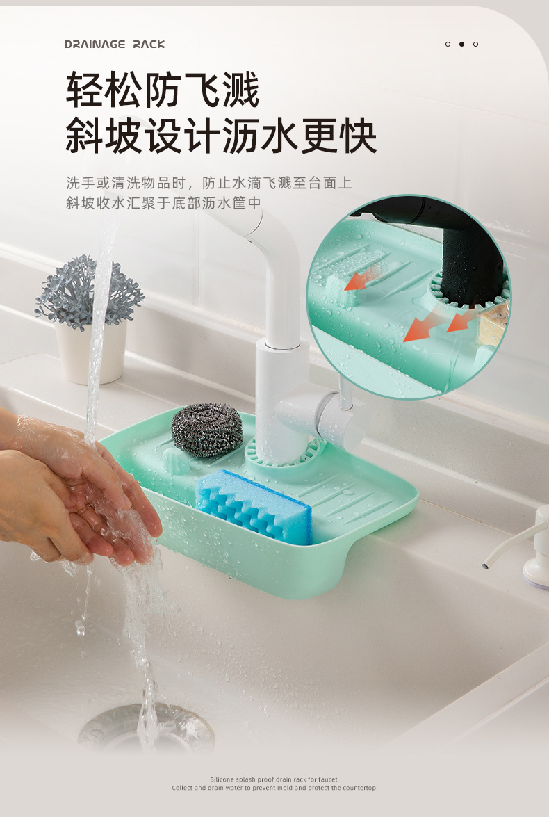 Faucet Splash-Proof Draining Rack Sink Set Water Cushion Non-Slip Table Pad Kitchen Rag Spong Mop Draining Storage Rack