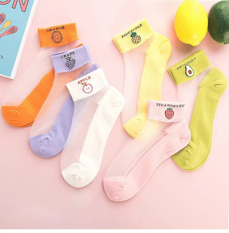 2023 Summer Thin Fashion Glass Stockings Anti-Snagging Kanekalon Socks Internet Hot Fruit Socks Women's Socks 中文版