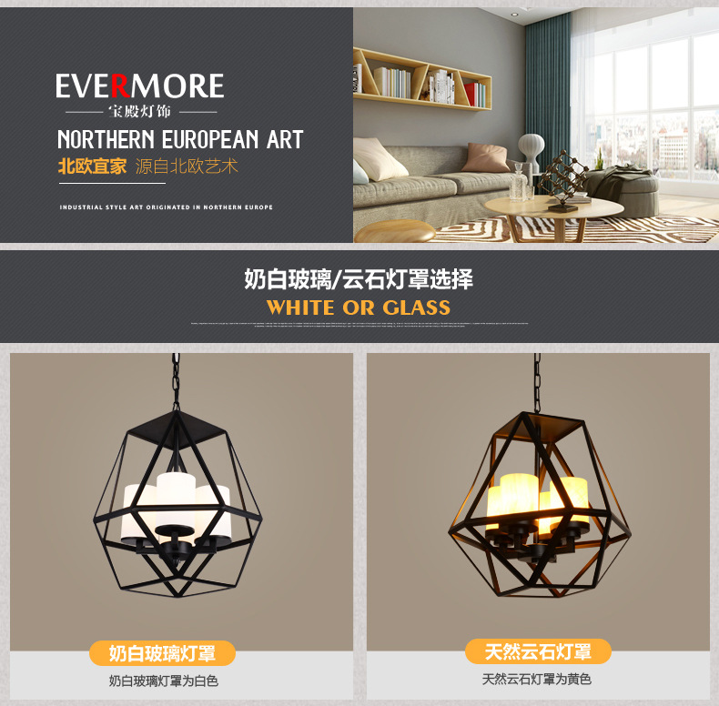 4-Head Milky White Glass Lampshade: with LED Light Source