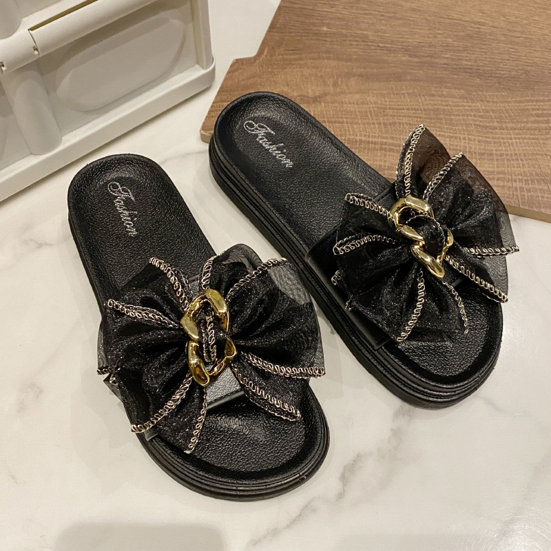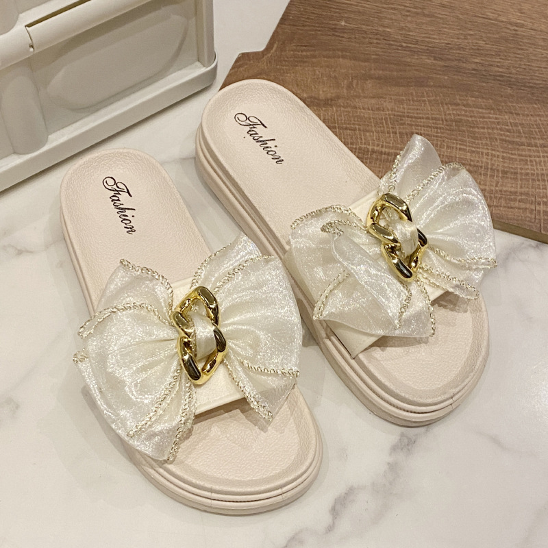 2023 summer new muffin platform slippers ins trendy leisure pajamas fashion bowknot all-matching women's shoes outerwear