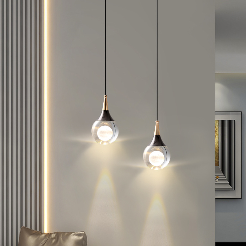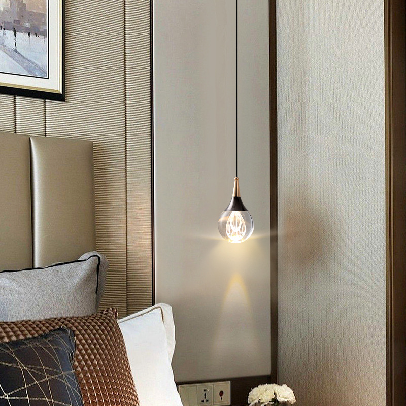 bedroom bedside chandelier modern simple and light luxury dining-room lamp design sense long line small droplight living room wall light bulb 中文版