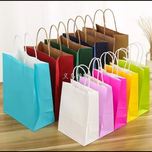Spot Goods Kraft Paper Bag Take out Take Away Portable Paper Bag Clothing Shopping Milk Tea Packing Bag Custom Printed Logo 中文版
