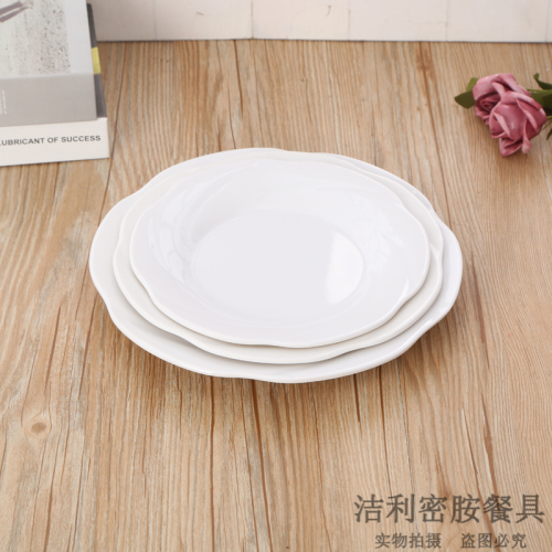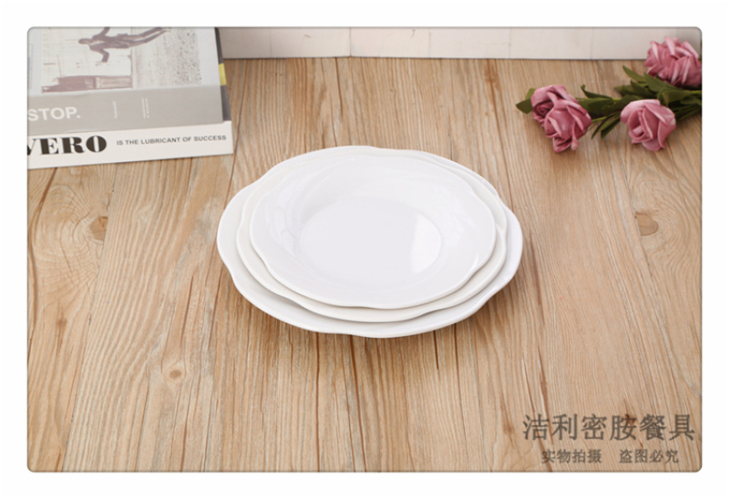 产品名称:圆形白色密胺材质菜盘 简约放水杯托盘茶盘果盘 欧式蛋糕托盘餐盘