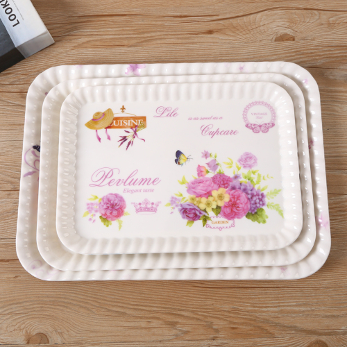 产品名称:长方形托盘密胺彩色印花端盘家用客厅水杯茶杯茶盘零食水果盘餐盘