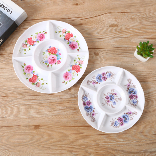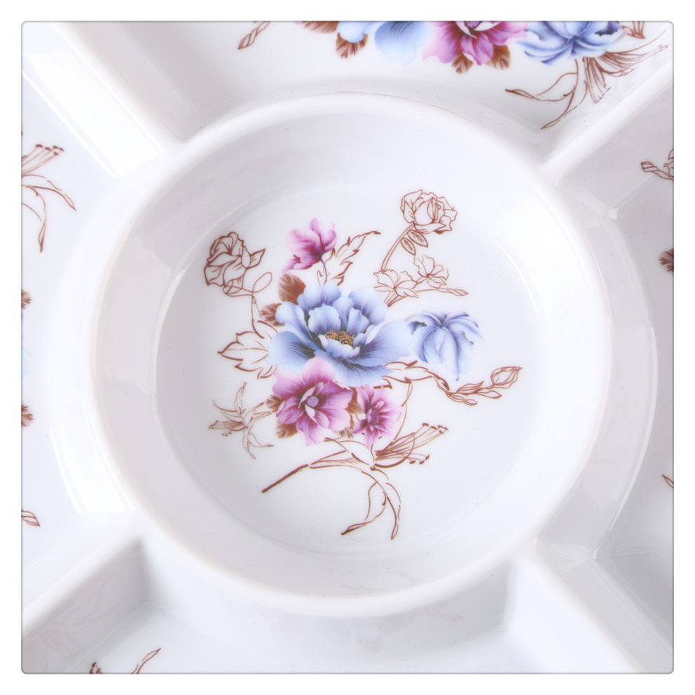 产品名称:圆形印花仿瓷水果盘 创意五分格干果盘 家用欧式客厅轻奢零食果盘