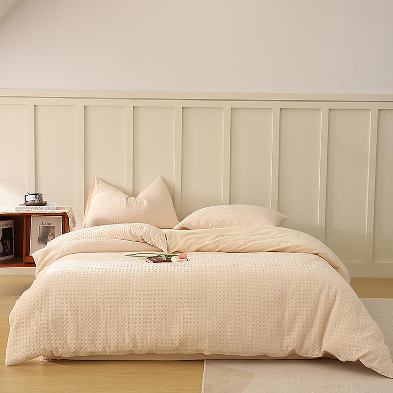 waffle apricot: 1.8 m fitted sheet 220*240 quilt cover four-piece set