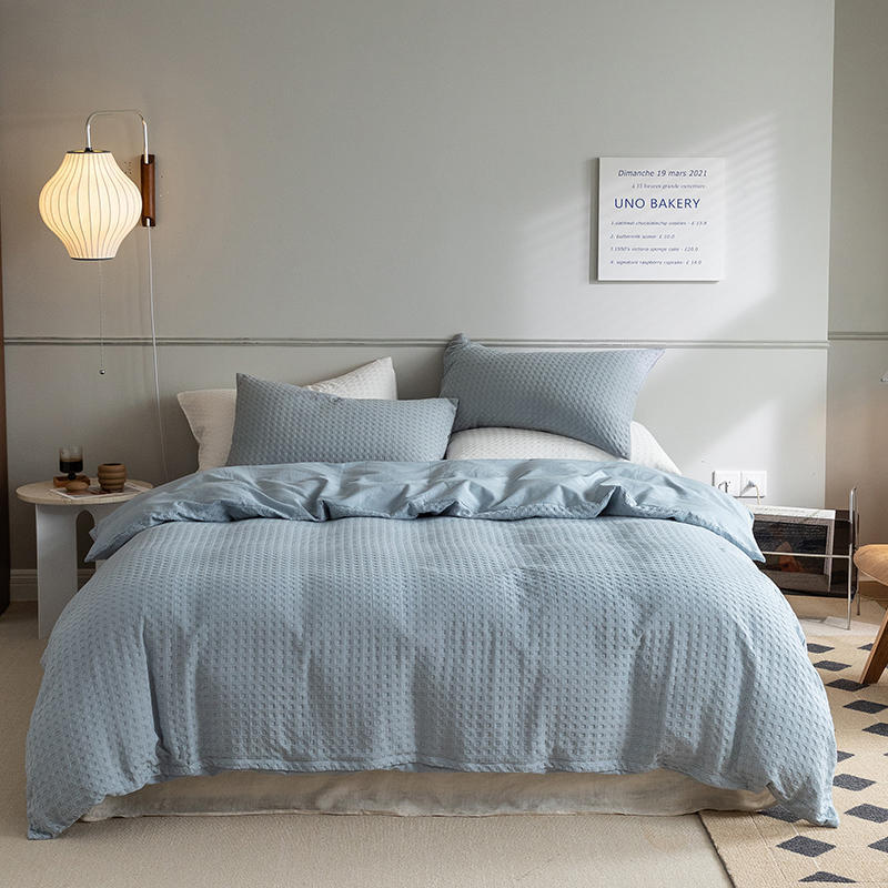 waffle light blue: 1.5 m bed sheet four-piece quilt cover 2.0*2.3 bed sheet 2.4*2.5 pillowcase 48*74*2