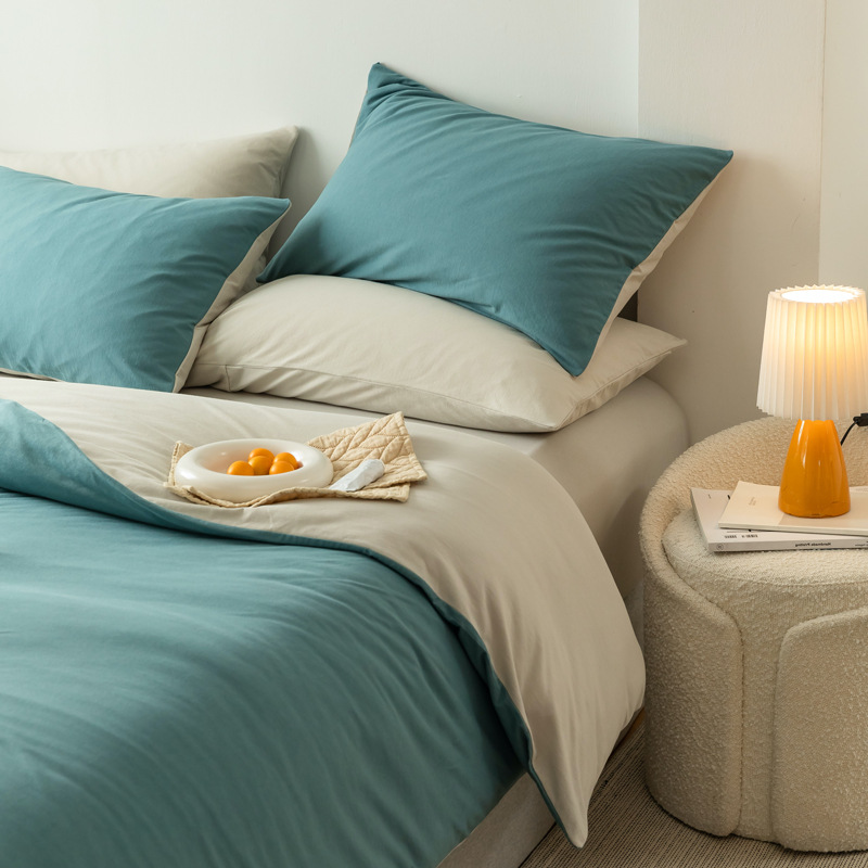 double-piece-cream blue: 1.5m bed sheet four-piece set with 200*230 duvet insert