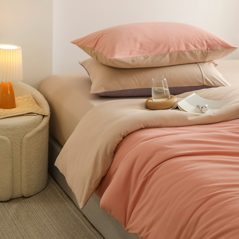 contrast color-jing gan lan pink: 1.5m fitted sheet four-piece set with 200*230 duvet insert
