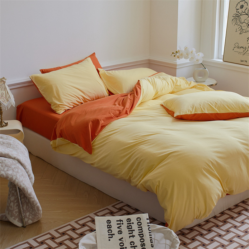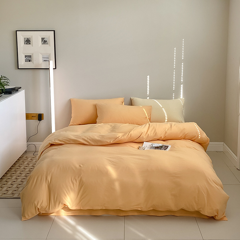 solid color-cream orange: 1.8m bed sheet four-piece set with 200*230 duvet insert