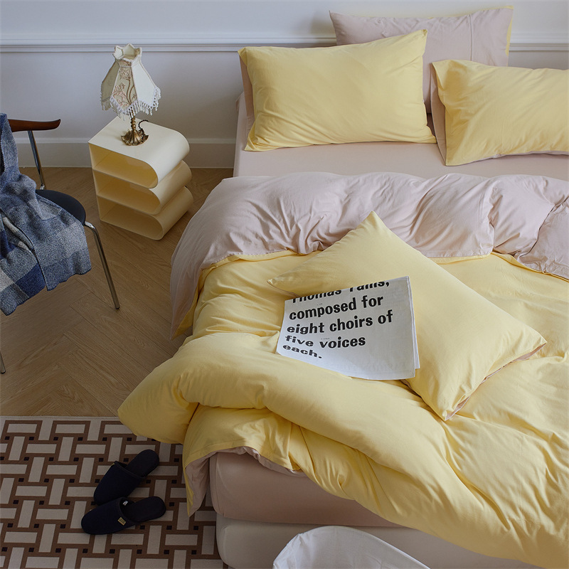double-milk goose yellow: 1.8m fitted sheet four-piece set with 200*230 duvet insert