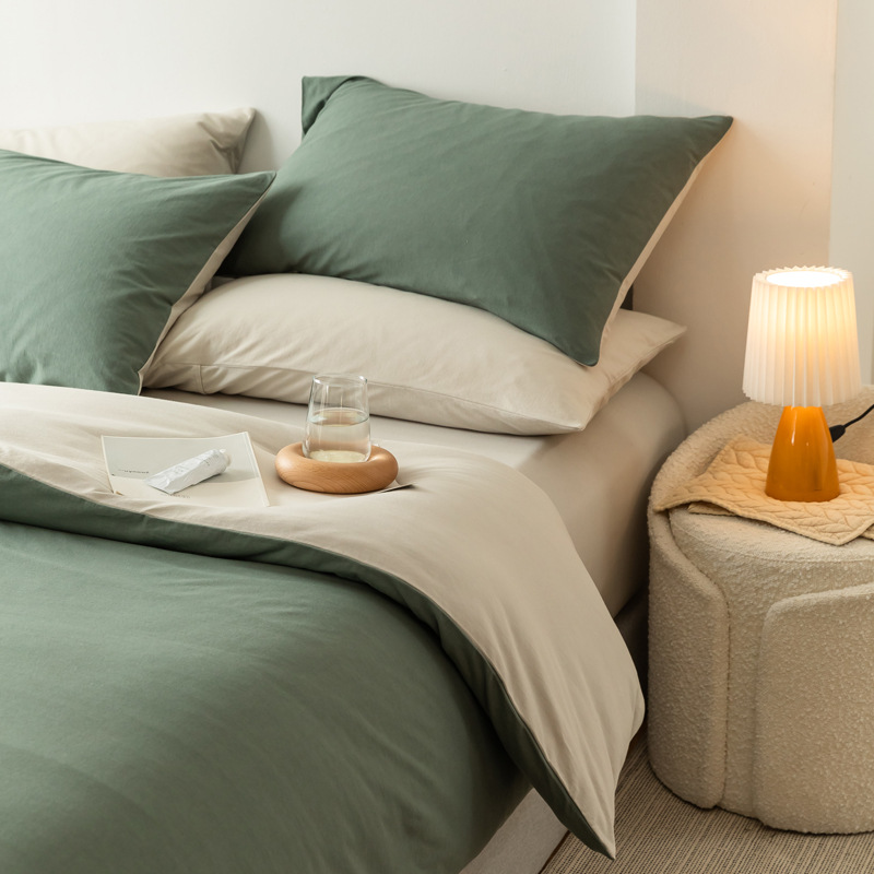 solid color-bud green: 1.8m bed sheet four-piece set with 200*230 duvet insert