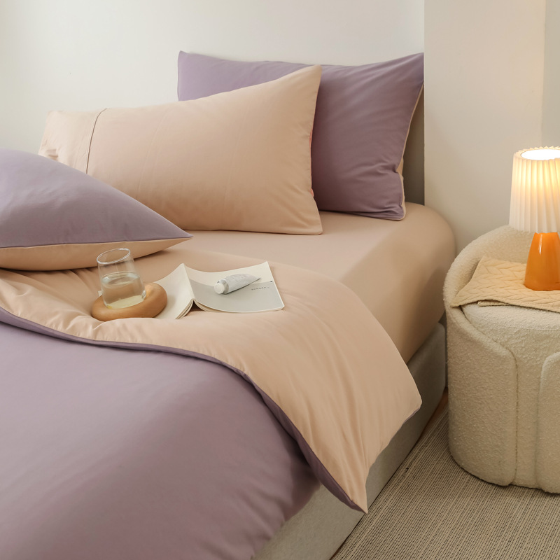 solid color-taro purple: 1.5m fitted sheet four-piece set with 200*230 duvet insert