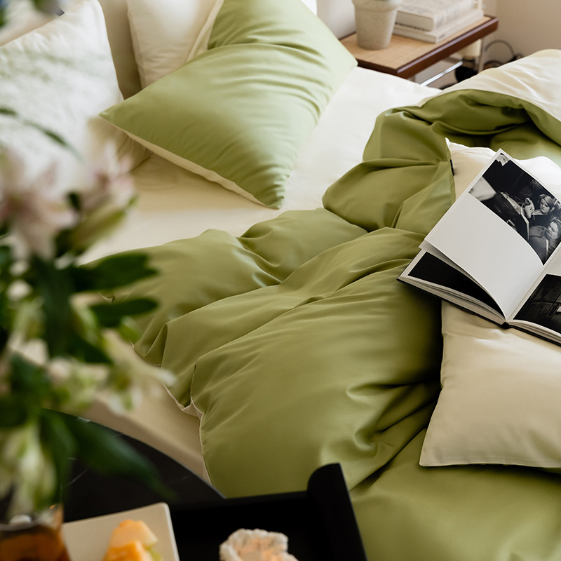 khaki green: 1.5 m bed (quilt cover 200*230) bed sheet four-piece set