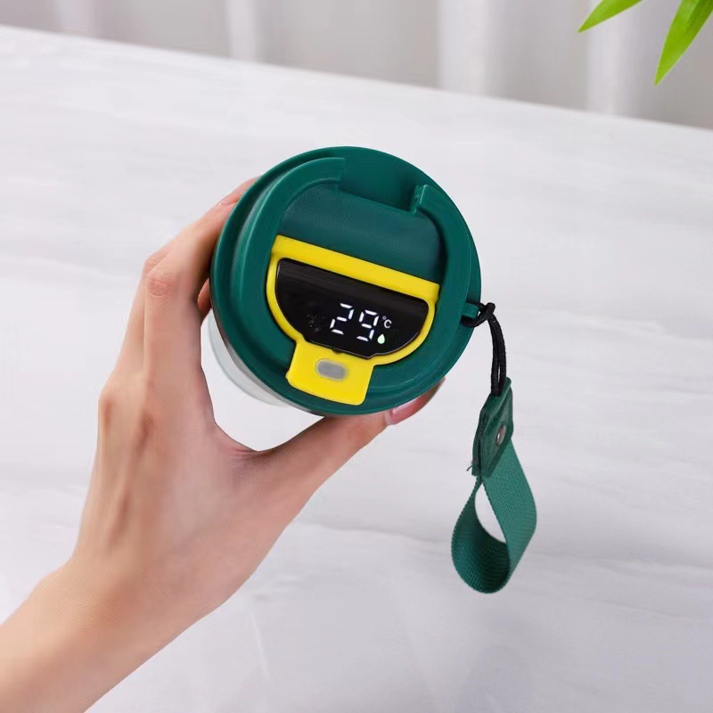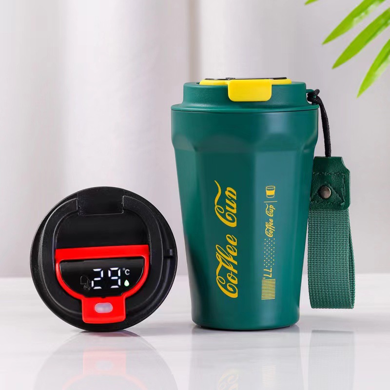 internet celebrity coffee cup stainless steel vacuum cup double-layer intelligent temperature measuring portable car cup portable car vacuum cup 中文版