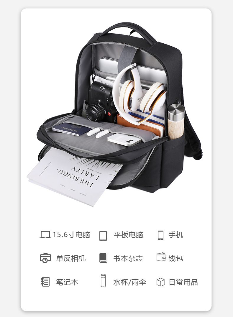 Stall Cross-Border New Arrival Men's Business Waterproof Multi-Functional Computer Backpack Male Student Large Capacity Travel Backpack 中文版