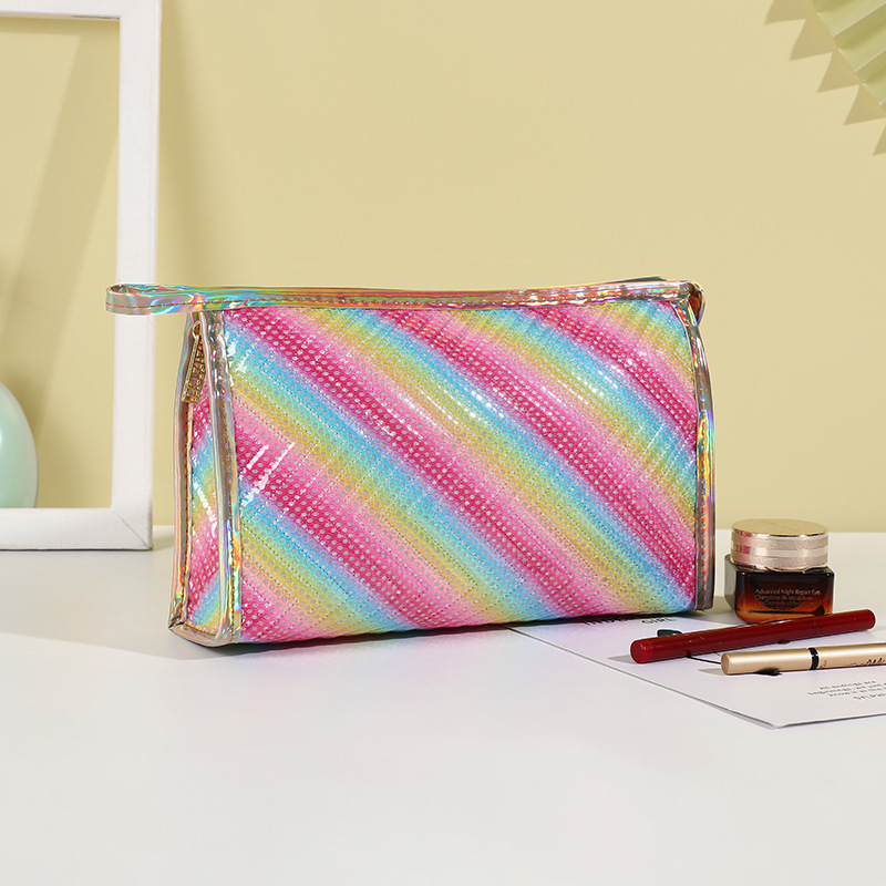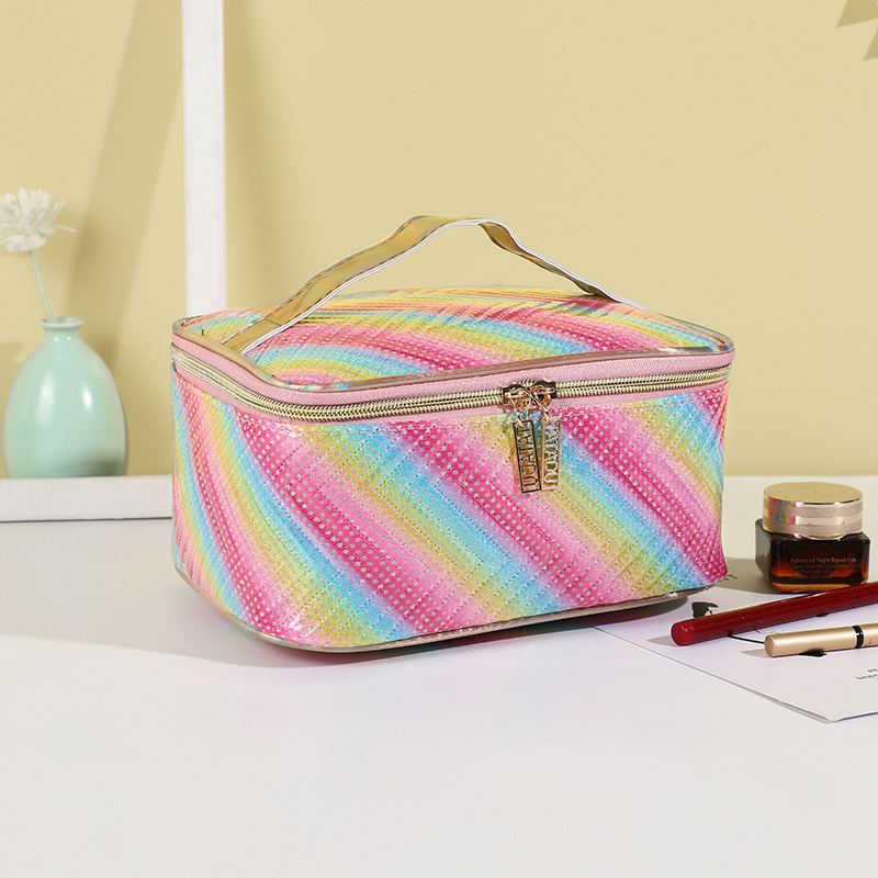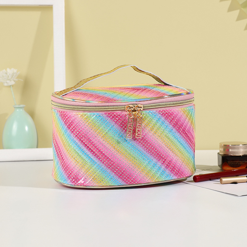 rainbow striped printed storage cosmetic bag home storage portable zipper bag portable commuter storage bag