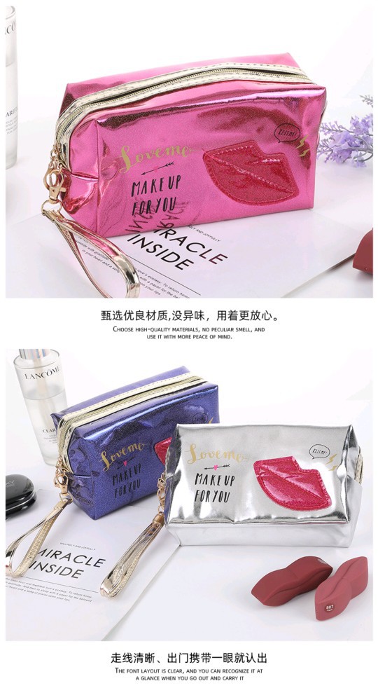 foreign trade laser red lips printed cosmetic bag korean fashion fashion cosmetics storage bag travel portable toiletry bag