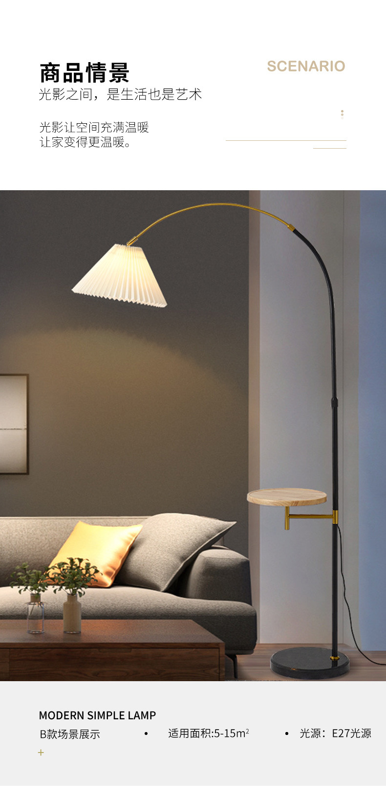 E Style Black + Wooden Tray Warm Light