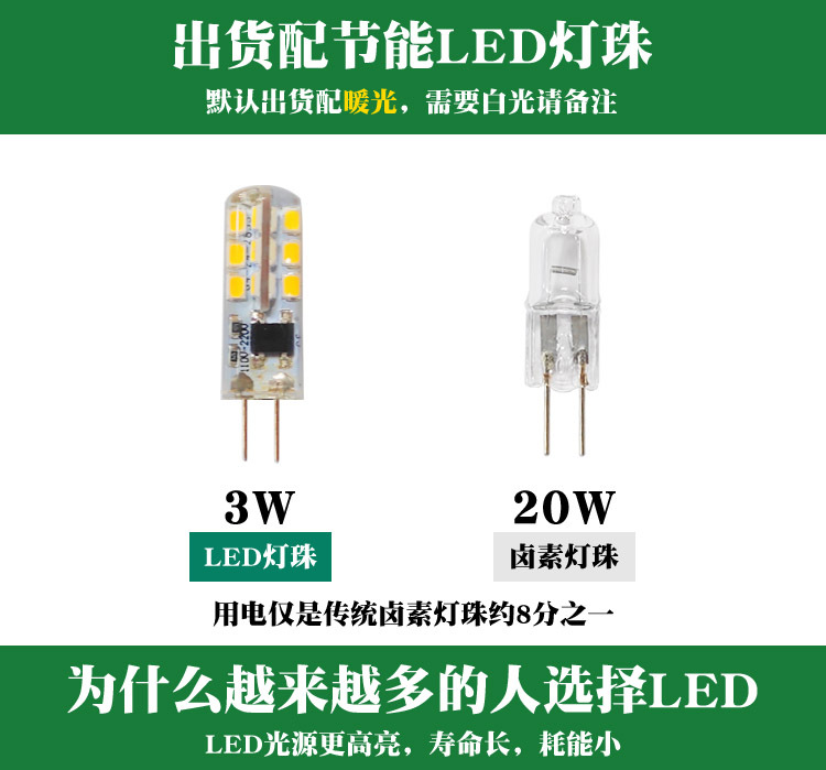 D1122 Chrome +3 Heads Transparent Cover Containing Light Source: Containing G4 Light Source