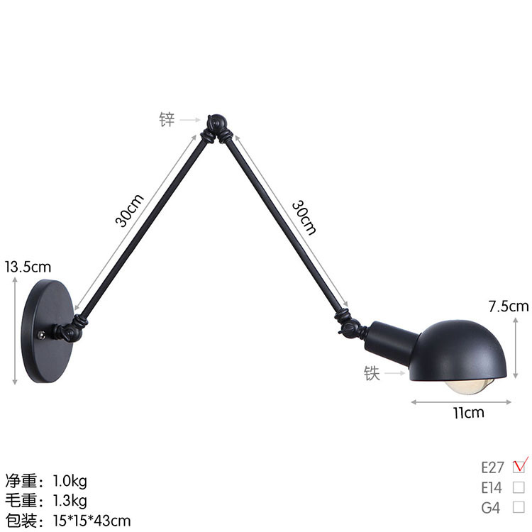 B0038l All Black 40 + 20cm: with LED Bulb