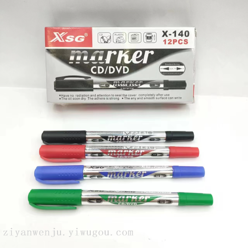 [Zi Yi Stationery] is located at Shop 22103, 1st Floor, Street 11, Gate 58, Area H, Yiwu International Commerce City. We specialize in a variety of pen products, including fluorescent pens, marker pens, whiteboard pens, ballpoint pens, watercolor pens, gel pens, and various novel and creative shaped pens. Our product range is extensive, and the platform cannot fully display them. If you have any needs, you can add me on WeChat for consultation: 18966022208. Welcome to visit our store for sample inspection and purchase. The XSG dual-headed CD pen is a classic four-color DVD marker pen for art drawing lines. It is available in 12-piece boxes with colors including black, red, blue, and green. Each package contains 1,728 pieces.