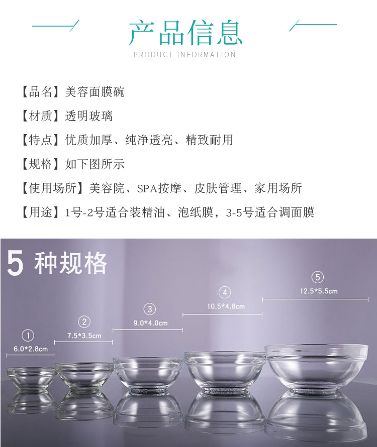no. 5 glass bowl + transparent silicone brush + small size sticks + measuring spoon