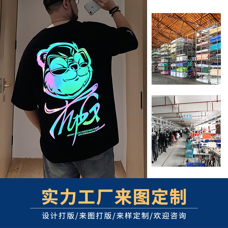 Fashion Brand Loose Men's and Women's round Neck Half Sleeve Digital Printing Short Sleeve T-shirt to Map Proofing Clothing Processing Custom Clothing Factory