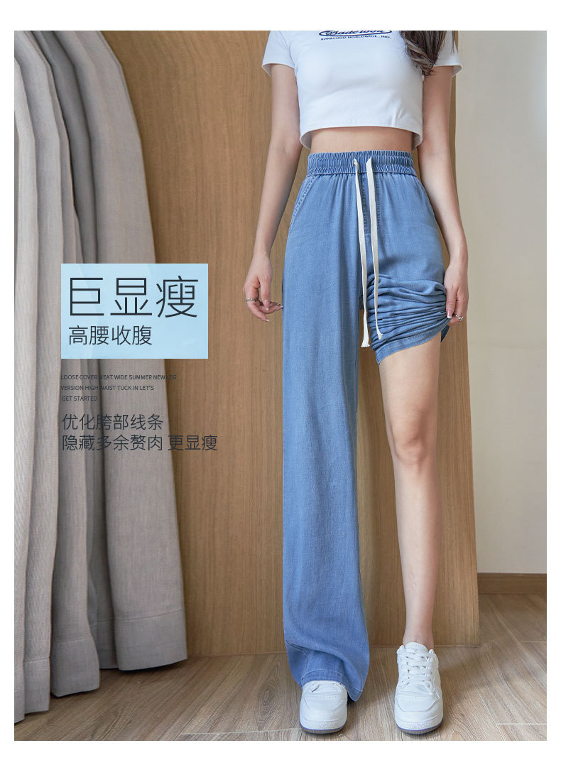Lyocell Jeans Women's Pants 2023 New Summer Thin Slimming Straight High Waist Drape Mop Wide Leg Pants 中文版