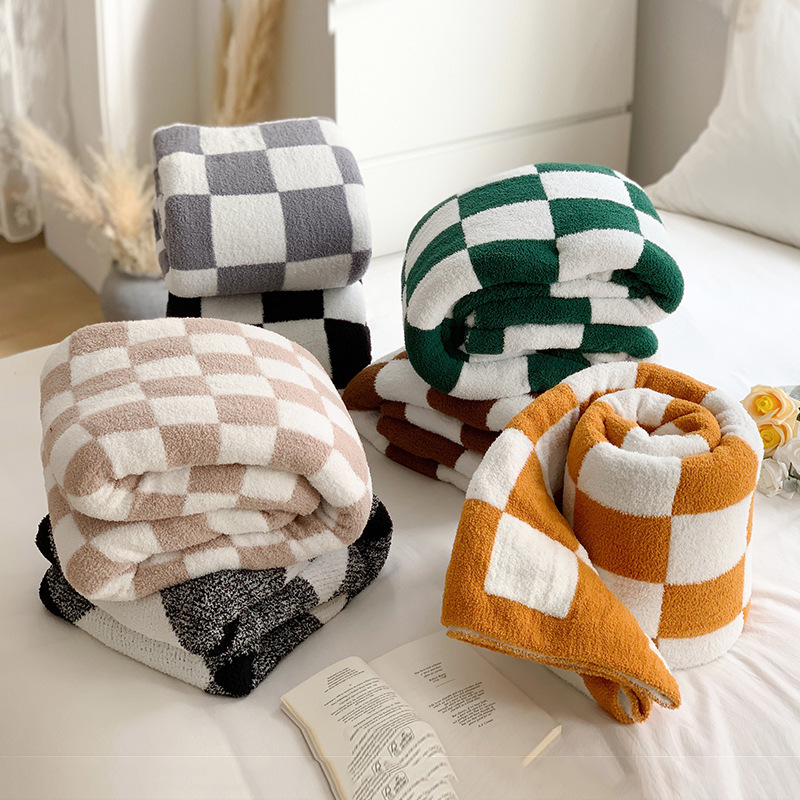 cross-border half velvet chessboard grid knitted blanket cover blanket nap blanket household sofa cover tailstock blanket wholesale 中文版