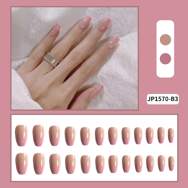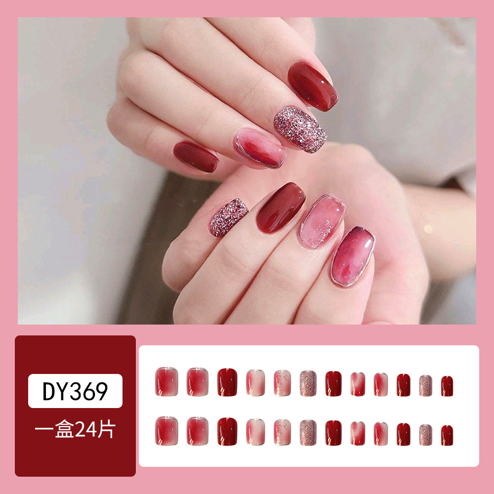 How to remove nail art?The nail art can be reused repeatedly by using glue, jelly glue, double-sided tape, or wearing nails in four different ways. Those who cherish it can use it for over a year or even longer.1.Adhesive styleYou can wait for it to fall off on its own over time, or you can speed up the process by soaking it frequently in hot water. The fastest way to remove the nail polish is to use nail polish remover or nail polish remover: apply a few circles around the edge of the nail, let the liquid penetrate into the nail, and then gently peel it off.2.Jelly GluePeel it off immediately, as it is quite firm. Be careful not to break the nail piece, as it may cause damage. You can use a nail polish remover stick to insert it into the jelly glue, then roll it up to remove it. For the next use, you can re-apply jelly glue or glue water to the nail piece.3.Double-sided TapeThe most easily removed, just peel off, and completely without traces, it can only be used once.4.Wear a nail back glue modelEasy to remove, just peel it off, the method of removing the adhesive version is exactly the same as the jelly glue.